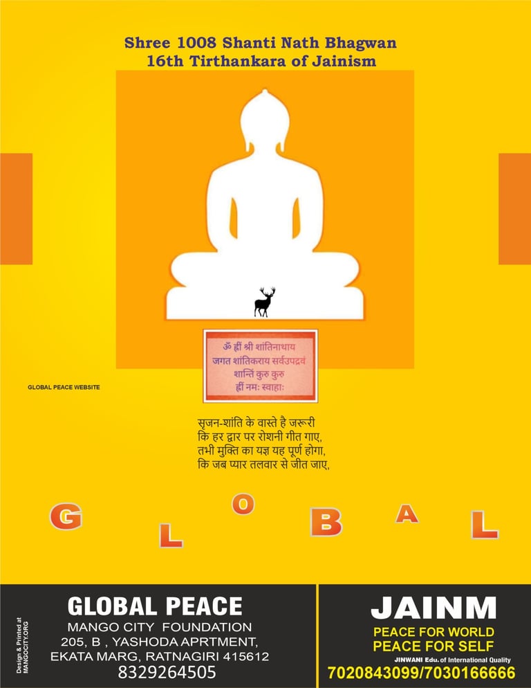 At Global Peace, we strive to spread the message of peace and harmony inspired by the teachings of 1008 Jain Tirthankar Bhagwan Shantinath. Join us in our mission to stop war.